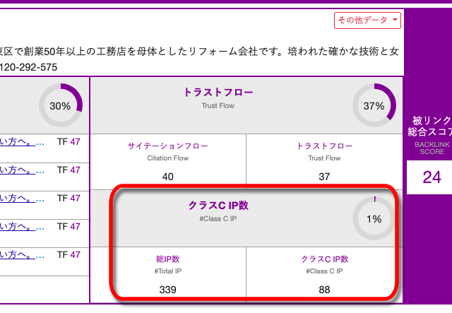 LINKアナリティクスを使うと、ライバルサイトや自社サイトがどれだけのIPアドレスからリンクされているかがわかります。IPアドレスの中でもクラスCレベルで分散された上位のIPアドレスからどれだけリンクを張ってもらっているかもわかるので正味の被リンク元数が見えてきます。